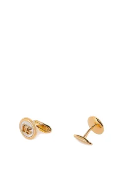 ( New Season ) Dolce & Gabbana Logo Plaque Round Cufflinks – Gold